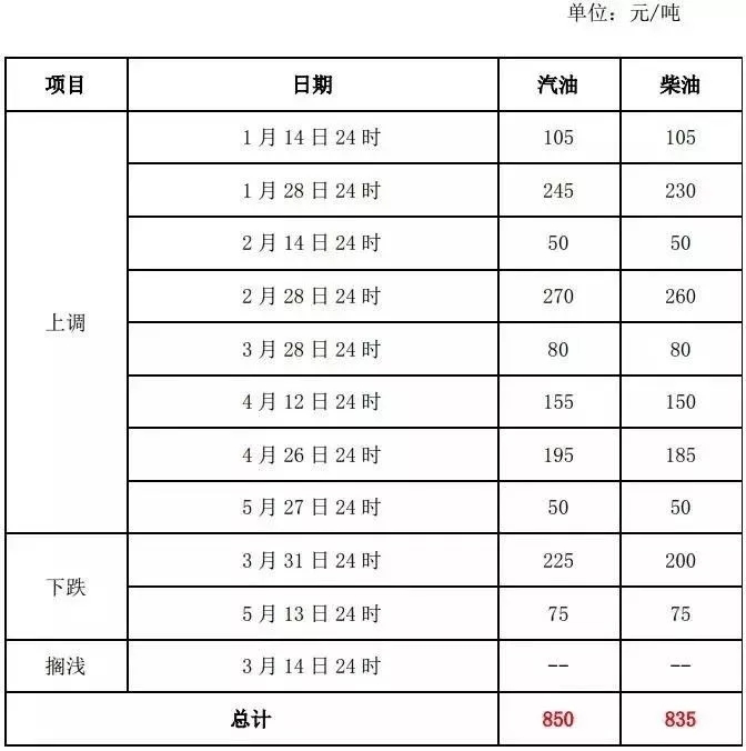 2019年成品油發(fā)改委調(diào)價(jià)幅度匯總(20190527)