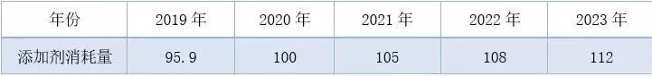 表4 2019~2023年中國(guó)潤(rùn)滑油添加劑用量預(yù)測(cè)    單位:萬(wàn)噸