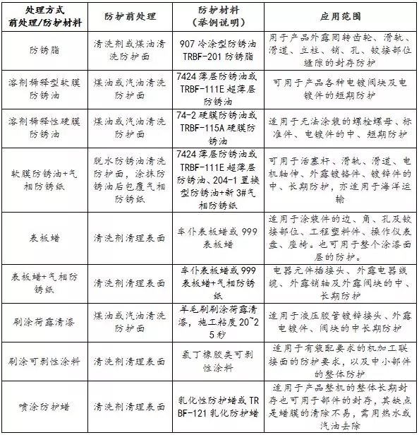 表1 工程機(jī)械產(chǎn)品封存防銹、防護(hù)處理的形式