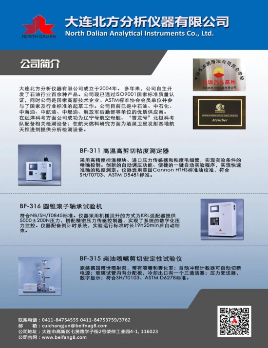 大連北方分析儀器有限公司系石油化工分析儀器專(zhuān)業(yè)生產(chǎn)公司。公司生產(chǎn)的產(chǎn)品廣泛應(yīng)用于石油化工、國(guó)防科技、公路建設(shè)、冶金制造等行業(yè),為其發(fā)展提供了有力的支持。公司現(xiàn)已通過(guò)ISO 9001國(guó)際標(biāo)準(zhǔn)質(zhì)量體系認(rèn)證,具有開(kāi)發(fā)、生產(chǎn)手動(dòng)及自動(dòng)化石油分析儀器的能力。大連北方分析儀器有限公司是大連市高新技術(shù)企業(yè),連續(xù)多年榮膺大連市科技創(chuàng)新企業(yè)稱(chēng)號(hào)。公司現(xiàn)涉及石油及石油產(chǎn)品、環(huán)保儀器及化驗(yàn)室通用儀器領(lǐng)域,是一家擁有雄厚技術(shù)力量、完善的銷(xiāo)售網(wǎng)絡(luò)及快速、高效的售后服務(wù)隊(duì)伍的綜合性公司。公司已與歐美等跨國(guó)企業(yè)在技術(shù)上展開(kāi)了廣泛的合作,生產(chǎn)的產(chǎn)品已經(jīng)遠(yuǎn)銷(xiāo)亞、非、東歐等多國(guó),贏得了一致的好評(píng)。
