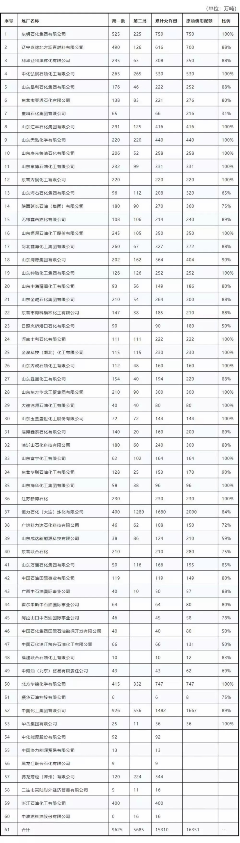 數(shù)說(shuō) ‖ 2019年原油非國(guó)營(yíng)貿(mào)易進(jìn)口允許量、使用配額統(tǒng)計(jì)表