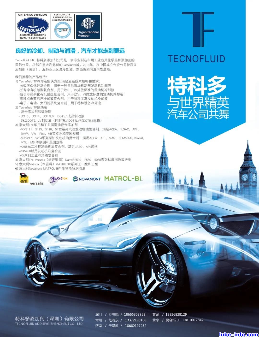 Tecnofluid S.R.L特科多添加劑公司是一家專業(yè)制造車用工業(yè)應(yīng)用化學(xué)品和添加劑的國際公司,總部在意大利北部的Castellanza城。2016年,在中國成立合資公司特科多添加劑(深圳),服務(wù)亞太區(qū)域冷卻液、制動液和潤滑劑制造商。