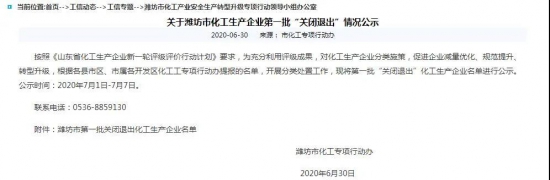 近期,山東省濰坊市化工專項(xiàng)行動(dòng)辦相繼公示了第一批、第二批“關(guān)閉退出”化工生產(chǎn)企業(yè)名單。
