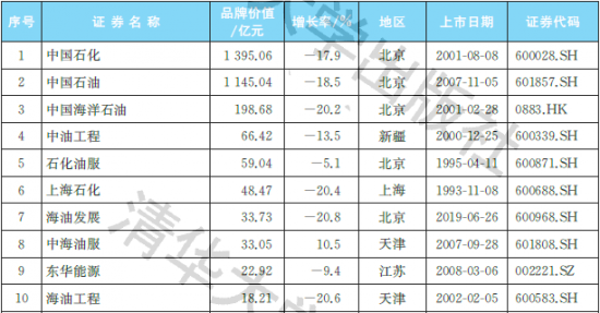 附:2021中國石油行業(yè)上市公司品牌價值榜單TOP10