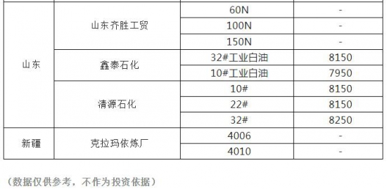 國(guó)內(nèi)基礎(chǔ)油最新報(bào)價(jià)