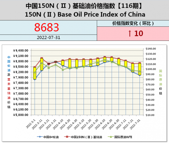 中國150N(Ⅱ)基礎(chǔ)油價(jià)格指數(shù)第116期-市場行情疲軟