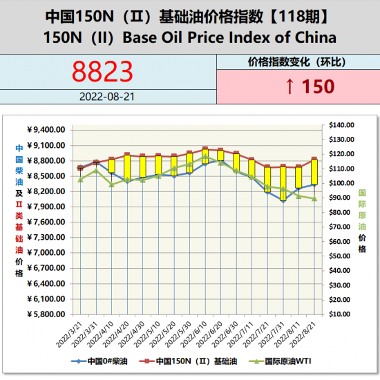 中國(guó)150N(Ⅱ)基礎(chǔ)油價(jià)格指數(shù)第118期-資源緊張?zhí)嵴?/h1>