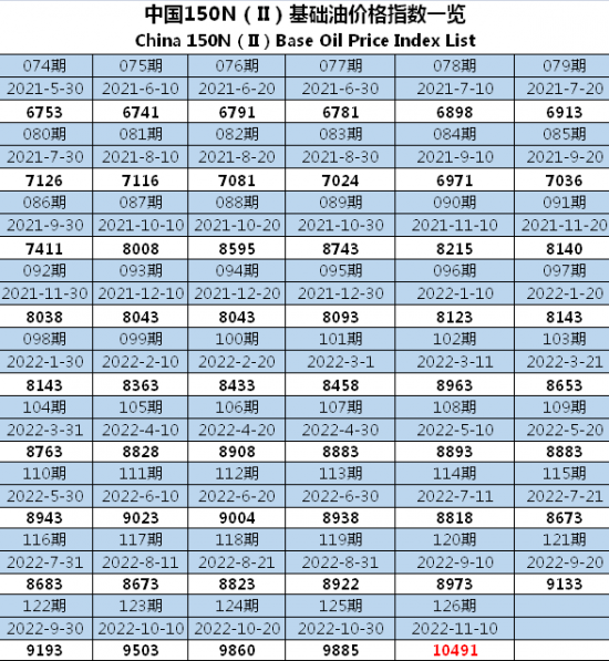 中國(guó)150N(Ⅱ)基礎(chǔ)油價(jià)格指數(shù)第126期-資源供應(yīng)緊張加劇