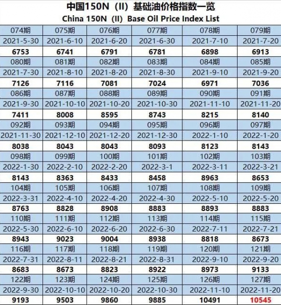 中國150N(Ⅱ)基礎(chǔ)油價(jià)格指數(shù)第127期-推漲主旋律不變