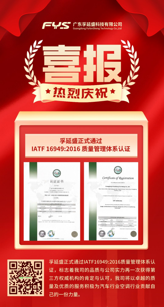 孚延盛榮獲通過(guò)IATF16949:2016體系認(rèn)證