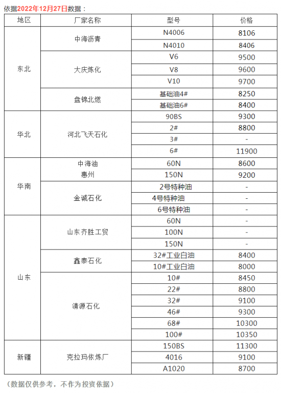 國(guó)內(nèi)基礎(chǔ)油最新報(bào)價(jià)