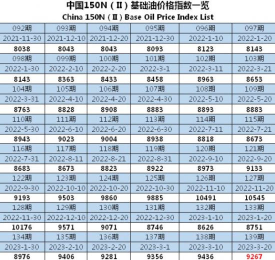 中國150N(Ⅱ)基礎(chǔ)油價(jià)格指數(shù)第139期-行情穩(wěn)中走低