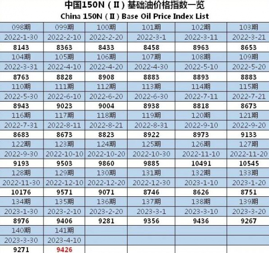 中國150N(Ⅱ)基礎油價格指數(shù)第141期-資源趨緊上揚顯現(xiàn)