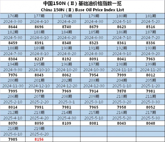 中國150N(Ⅱ)基礎(chǔ)油價格指數(shù)第219期-原油提振市場回升