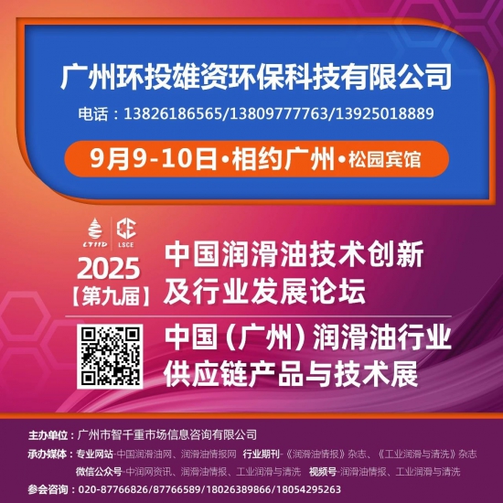 “2025(第九屆)中國(guó)潤(rùn)滑油技術(shù)創(chuàng)新及行業(yè)發(fā)展論壇/中國(guó)(廣州)潤(rùn)滑油行業(yè)供應(yīng)鏈產(chǎn)品與技術(shù)展”將延續(xù)精彩,再譜新篇,誠(chéng)邀新老朋友參會(huì)/參展!